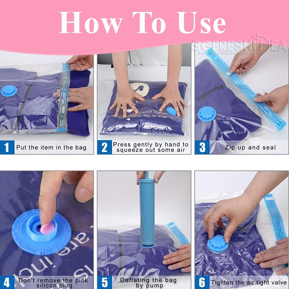 (HOME+) Vacuum Sealer Packing Bag Storage Compression For Clothes-Vacumn Vaccum Ziplock Travel