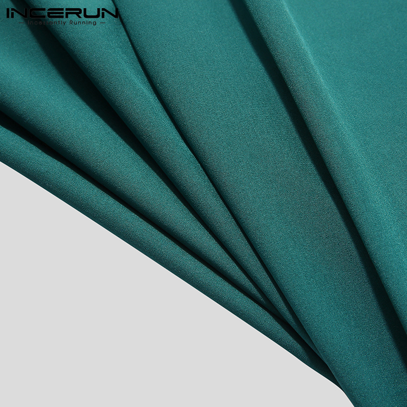 INCERUN Men's Fashion Plain Short Sleeve Buttons Loose Casual Shirts