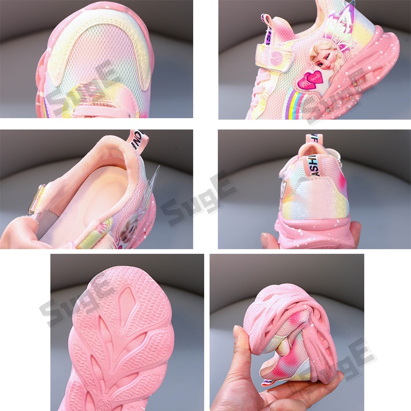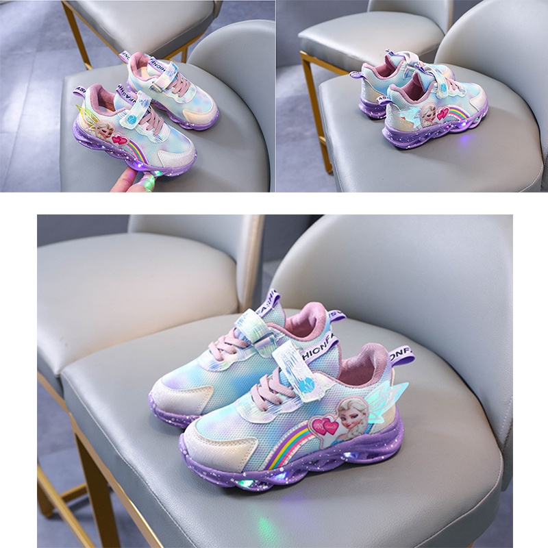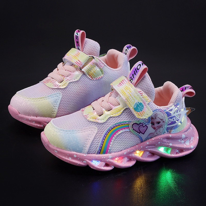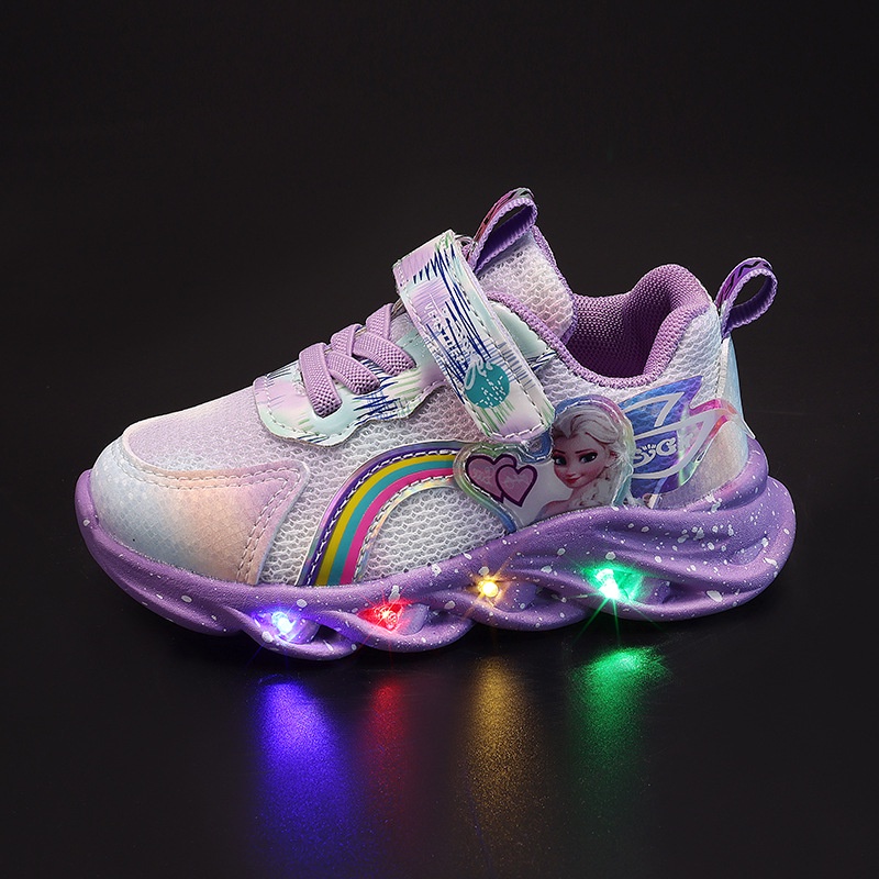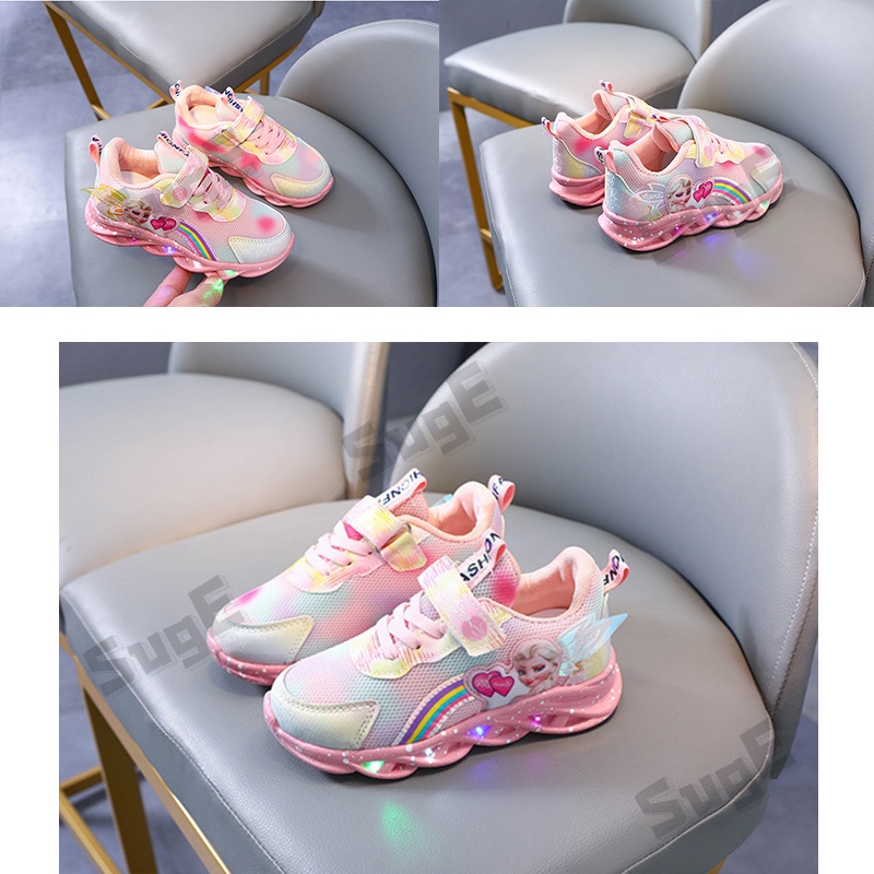 SUGE New Cartoon Girls Princess Kids Shoes LED Running Frozen Children Sneakers for Girls Fashion Elsa